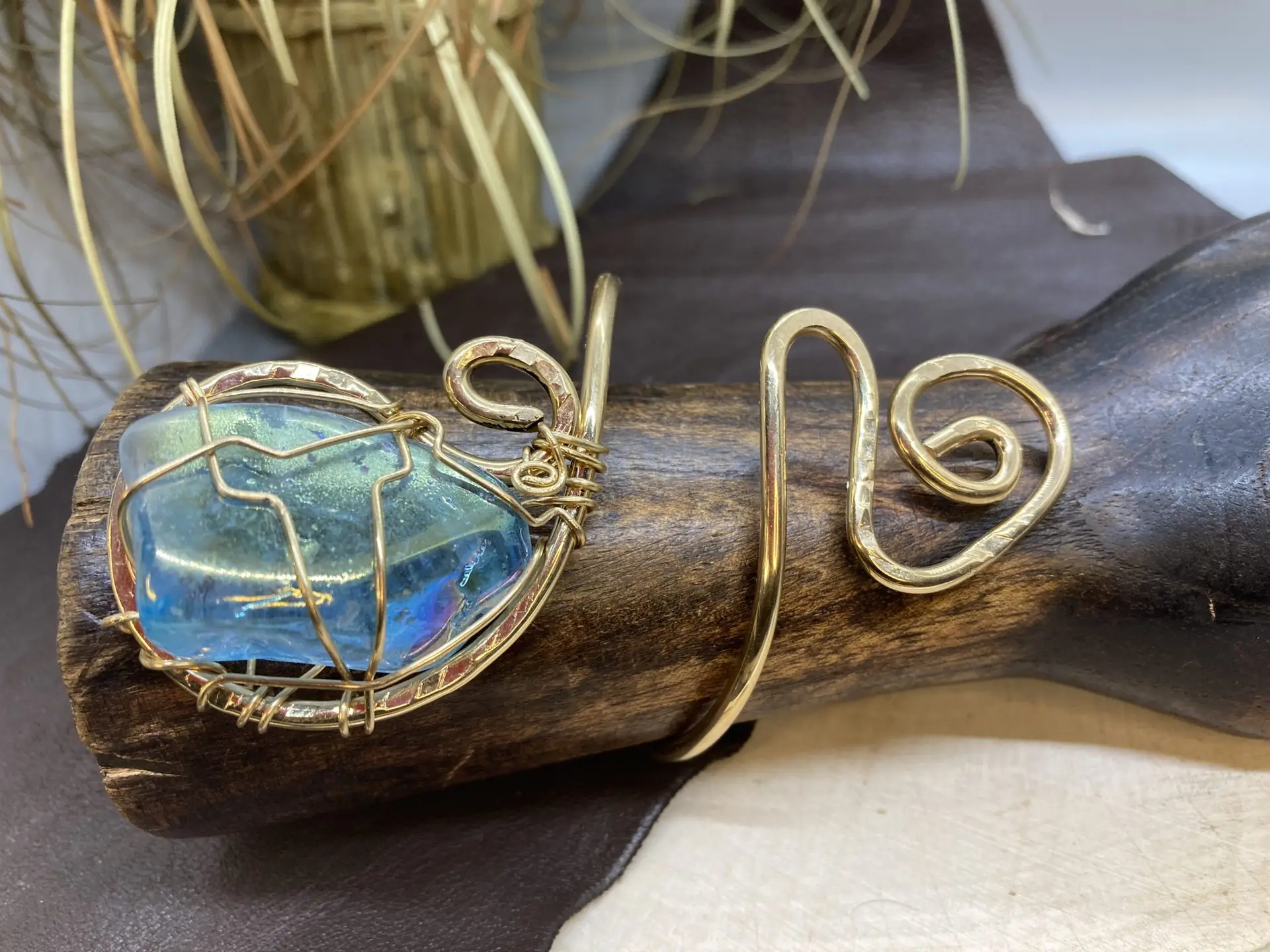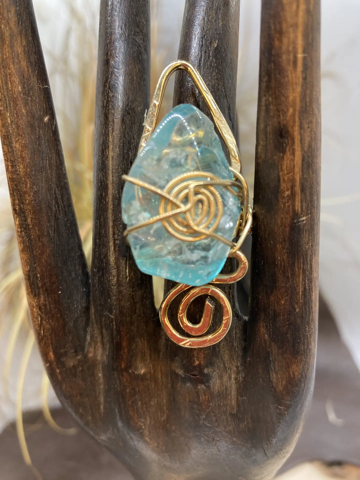 This electric blue aqua aura quartz pendant is a force to be reckoned with. While a man-made stone, it is fuses quartz and gold together through and alchemical process, making it very powerful. This stone creates space and welcomes everything new. A stone for modern times.