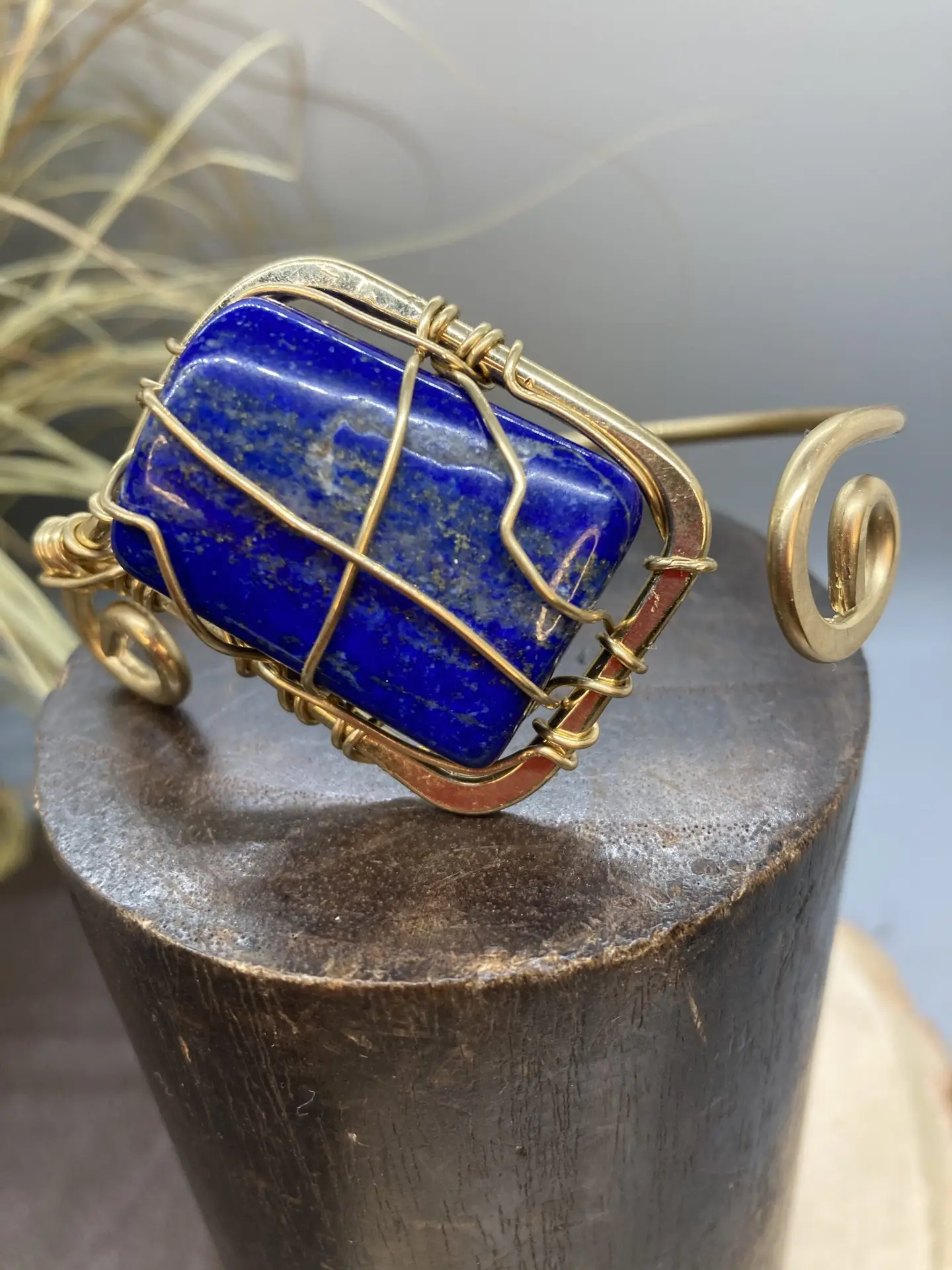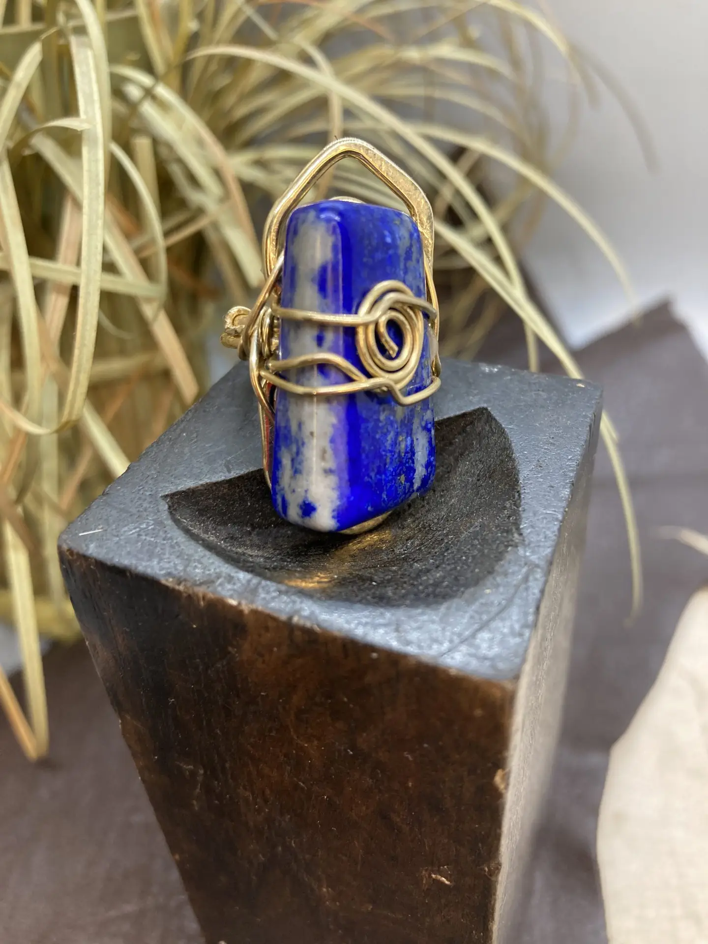 Unleash your psychic abilities and your third eye with this deep lapis lazuli ring. Truth and lapis work hand in hand. This ring has hints of brass top wrap wire.
