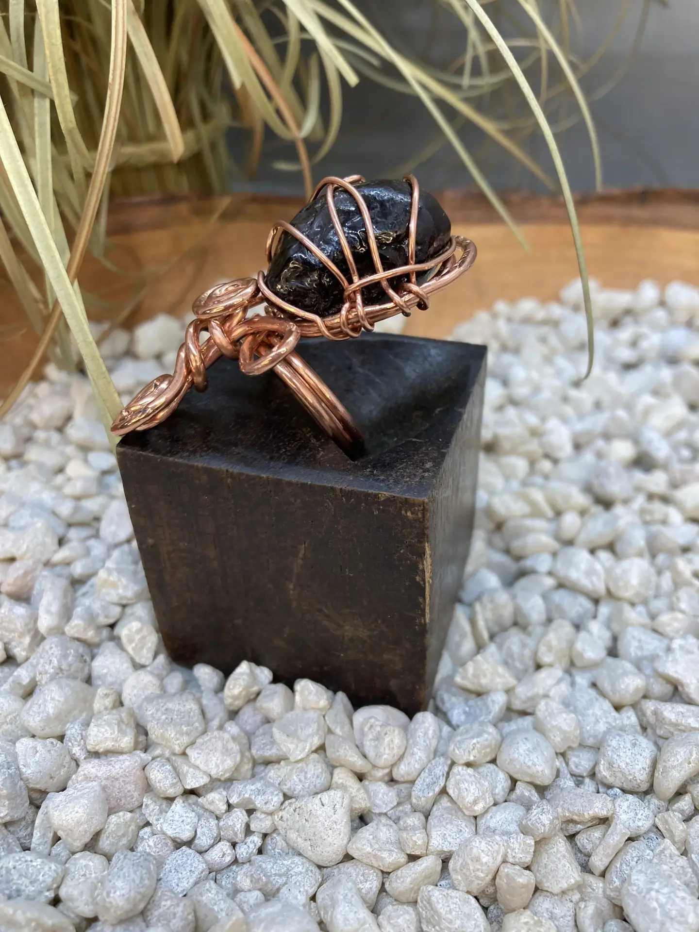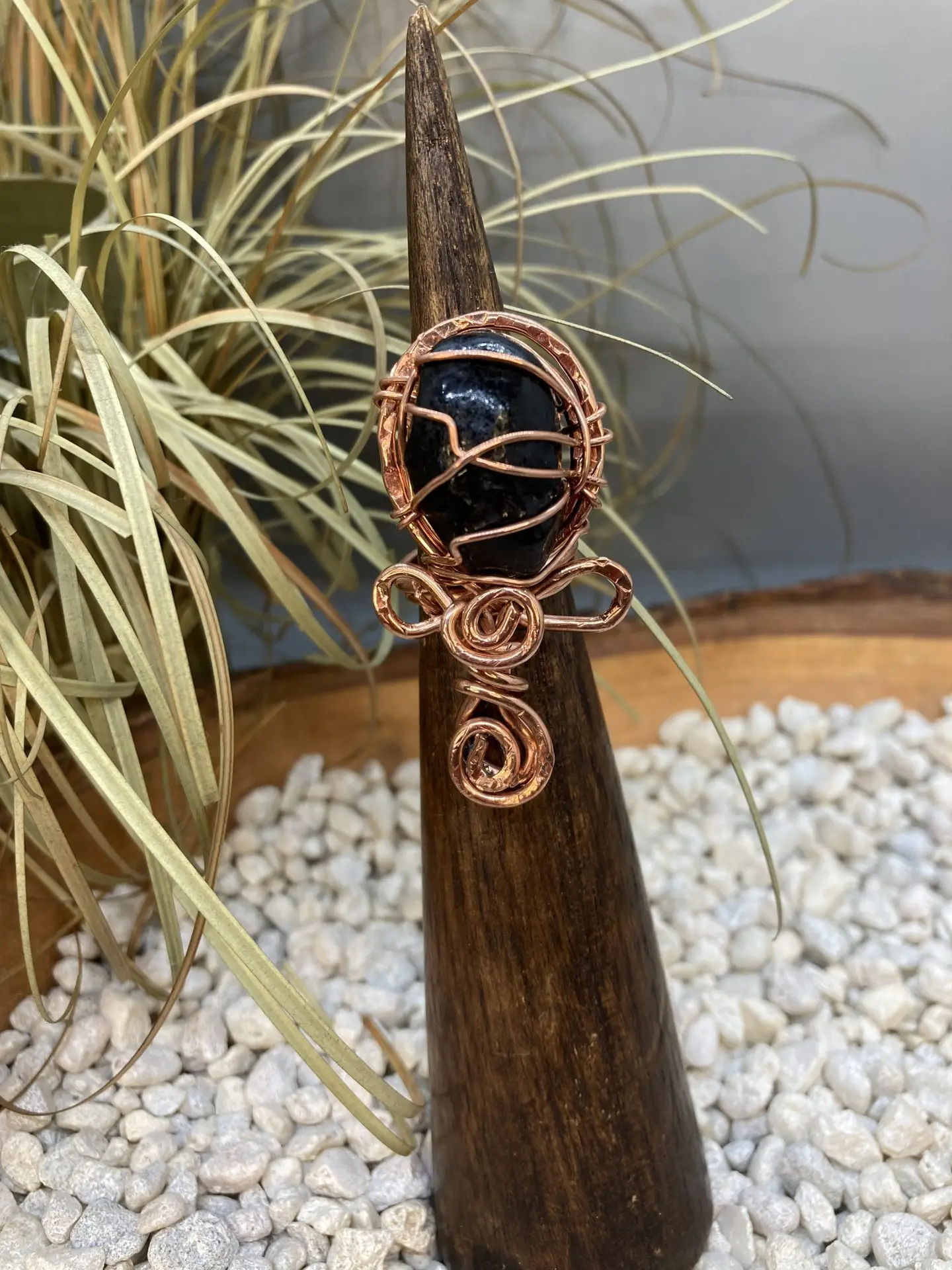 Apache Tear is a more gentle form of obsidian. It also aids in pyschic protection. Add to your mysticism with this raw apache tear ankh ring.