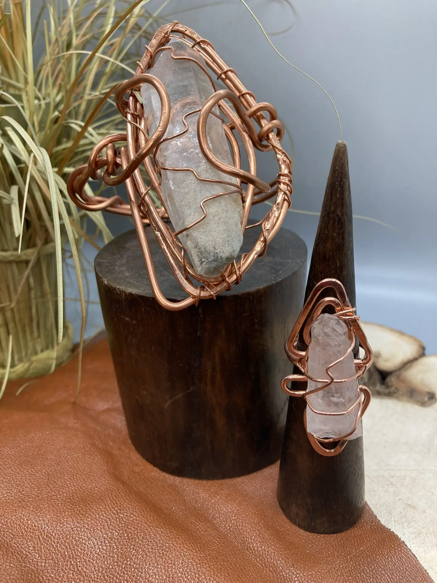 This copper amethyst set is special indeed. Just as the ankh represents life, this ring is going to stop traffic, all day – everyday. And the kundalini kuff style bracelet, with the amethyst centered between the copper waves for the bands is crazy too. Good for a snug fit and a warm feel around your wrist.