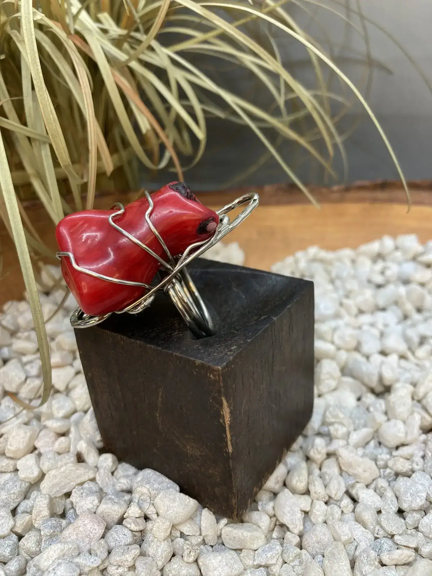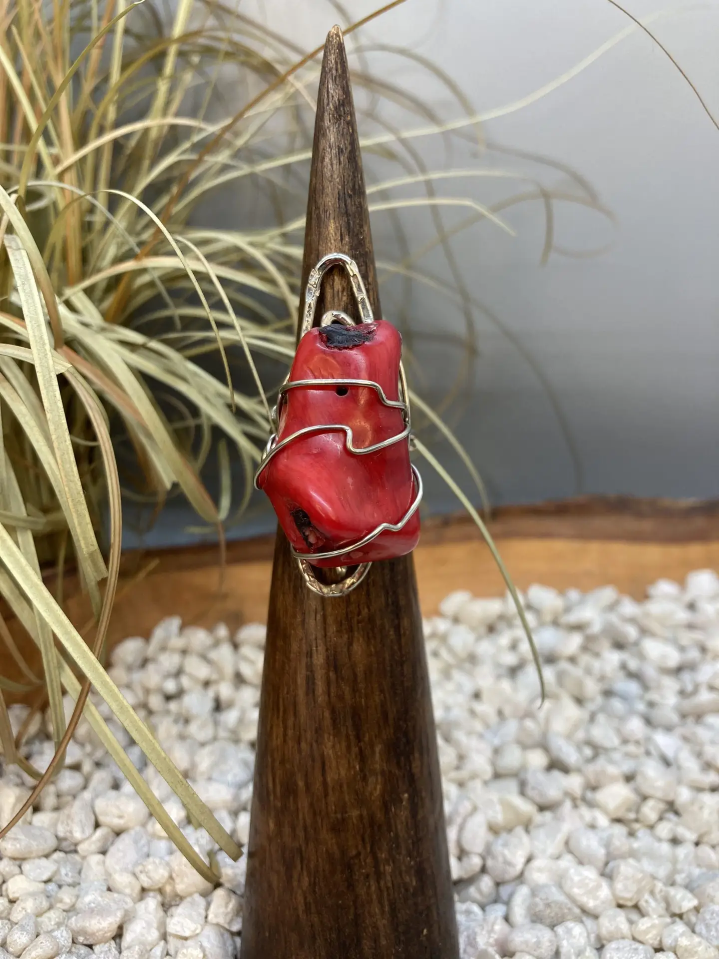 Nickel Red Coral Ring – Long